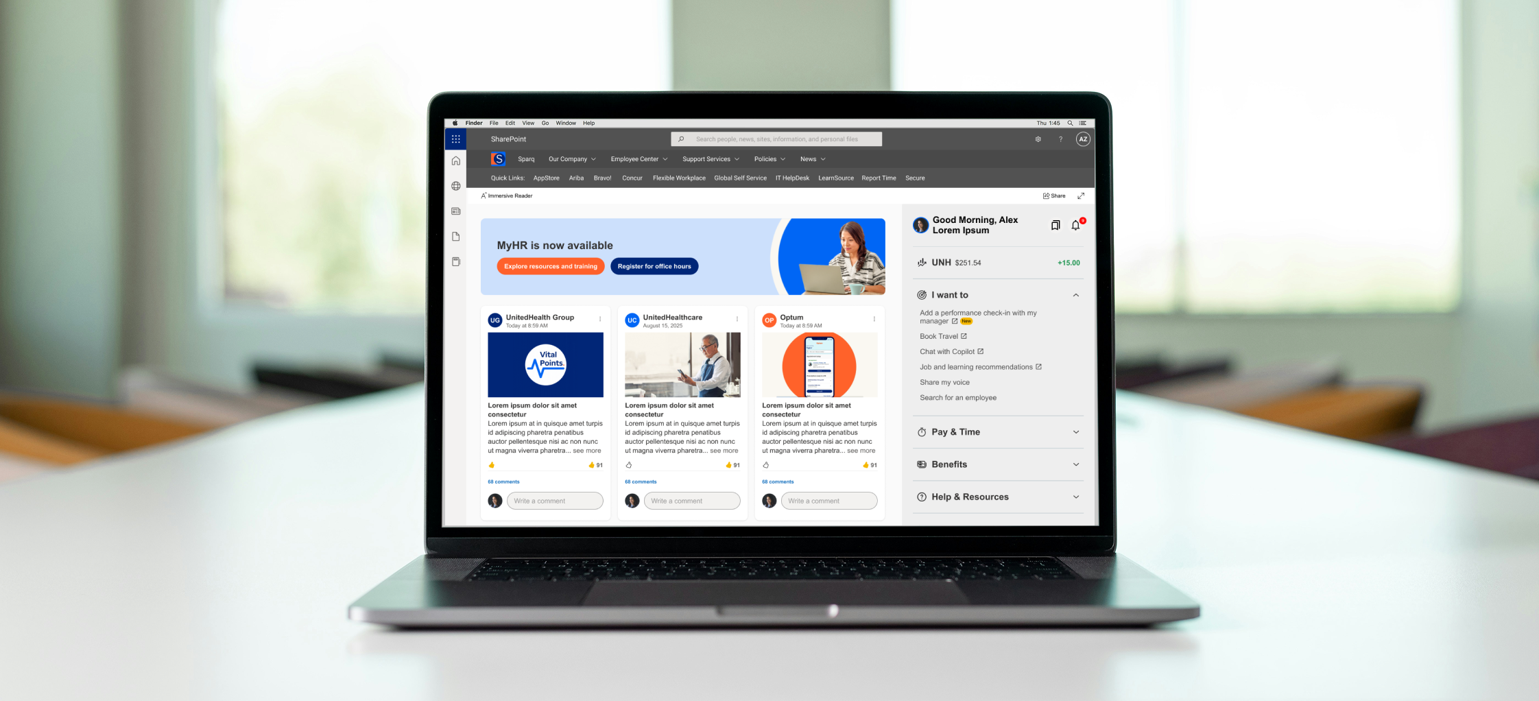 My challenge was to simplify the experience, improve usability, and strengthen engagement by rethinking how employees interact with their digital workplace.